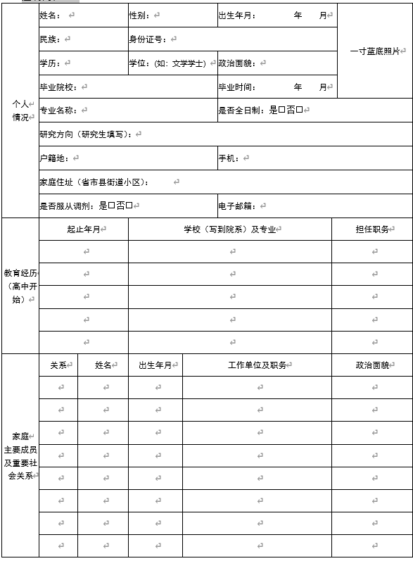 青海省烟草专卖局(公司)2025年高校毕业生招聘应聘登记表