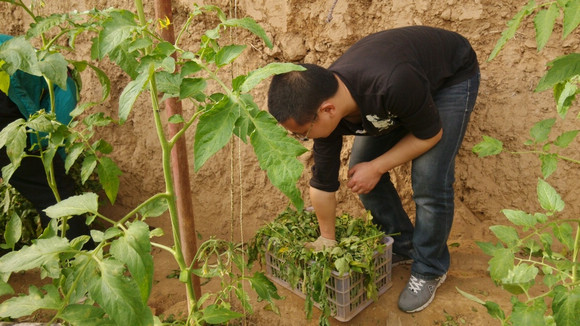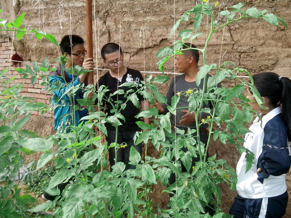 烈日炎炎、热情不减的小使者们,在合作社社长带领下前往大棚进行调研。“田园使者”认真了解西红柿的生长特点,以及目前的市场情况和经济收益,虚心向正在忙碌的农户们请教西红柿目前阶段易发的生长问题以及处理方法。最后,同学们在农户的指导下学习为西红柿打叶,并帮助他们清理大棚里的垃圾。