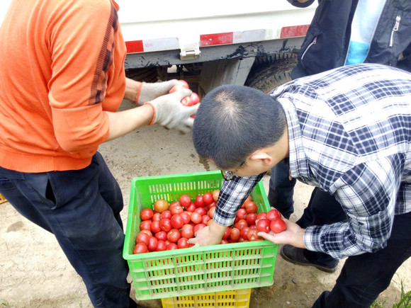 队伍抵达目的地后,大家不顾路途劳累,一下车便在寨西村广丰合作社负责人的带领下向生产基地展开调研。经了解得知这个合作社共有30户农民,土地100多亩,有80多个塑 料大棚,以经营番茄为主,每年两茬。
