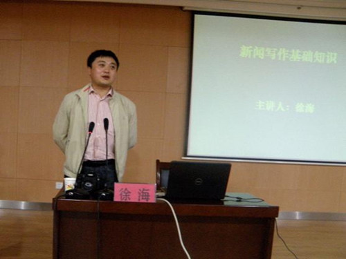 此次报告会内容主要围绕新闻稿写作的重要性及其技法、后期事项展开。首先,徐海老师就应用文写作尤其是新闻稿写作对个人工作发展具有的重要影响作了阐述,他提到,新闻属公文范畴,新闻稿的写作体现着一个人的表达和交际能力。而后,徐海老师重点针对新闻稿的写作技巧和要求向同学们作了阐释。过程中,徐海老师耐心讲授新闻写作的基本知识,并结合多篇典型新闻稿向同学们揭示了新闻写作中其内容真实性、选材及瞄准角度等方面的重要性。最后,徐海老师强调了新闻稿投稿事项,并表达了对同学们应用文写作方面的美好希骥。