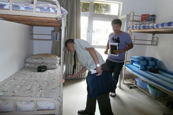 辅导员在检查内务