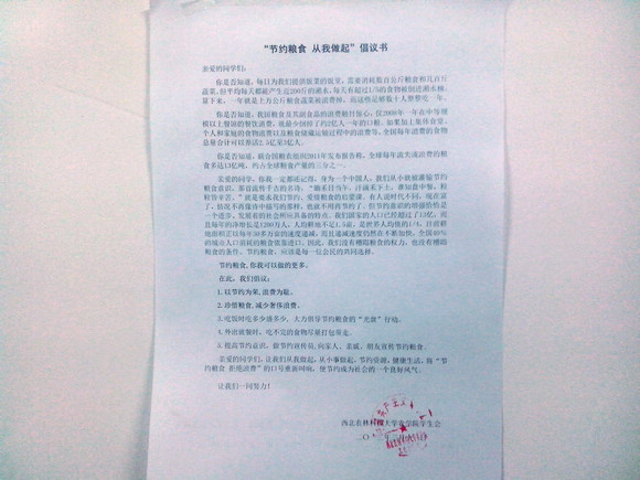一粥一饭,当思来之不易;半丝半缕,恒念物力维艰。3月11日和12日中午,js555888金沙老品牌学生会在北校区东区宿舍区和西区宿舍区分别开展了“我青春我节约 我时尚 我光盘”主题倡议活动,并代表所有js555888金沙老品牌学子向全校发出了“节约粮食,从我做起”的倡议书。