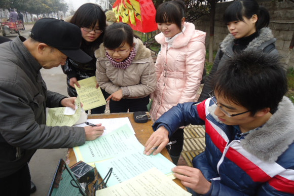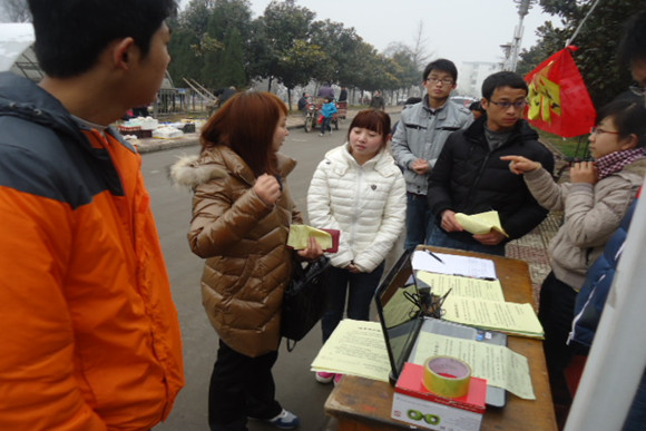 虽然天气有些寒冷,但同学们仍然抱着极大的热情,认真地向居民们介绍这次活动的内容。同学们们不厌其烦地为居民们答疑解惑,并认真地记下他们对此次活动的种种看法与建议。对于那些对这次活动十分感兴趣的居民,同学们还请他们留下他们的联系方式以及对参加帮扶活动志愿者的要求与建议。活动中同学们的热情赢得了小区居民的赞许:“或许我们并不精通琴棋书画,但我们有一颗让人快乐的心;或许我们并不那么圆滑懂事,但我们有一颗辛勤服务的心!”