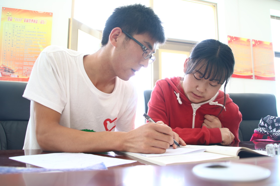 上午,服务队分成两队,一队前往当地合作社做义工。恰逢雨天过后,成堆的瓜子受潮容易变质,合作社需要将颗粒小、质量差的瓜子捡出来炒熟之后包装,一队人去帮忙捡瓜子。另一队则前往村委会,给高三的学生辅导功课,基于学生的学习情况,从队伍里专门挑出在数学和英语方面成绩较好的队员,在村委会进行悉心辅导。