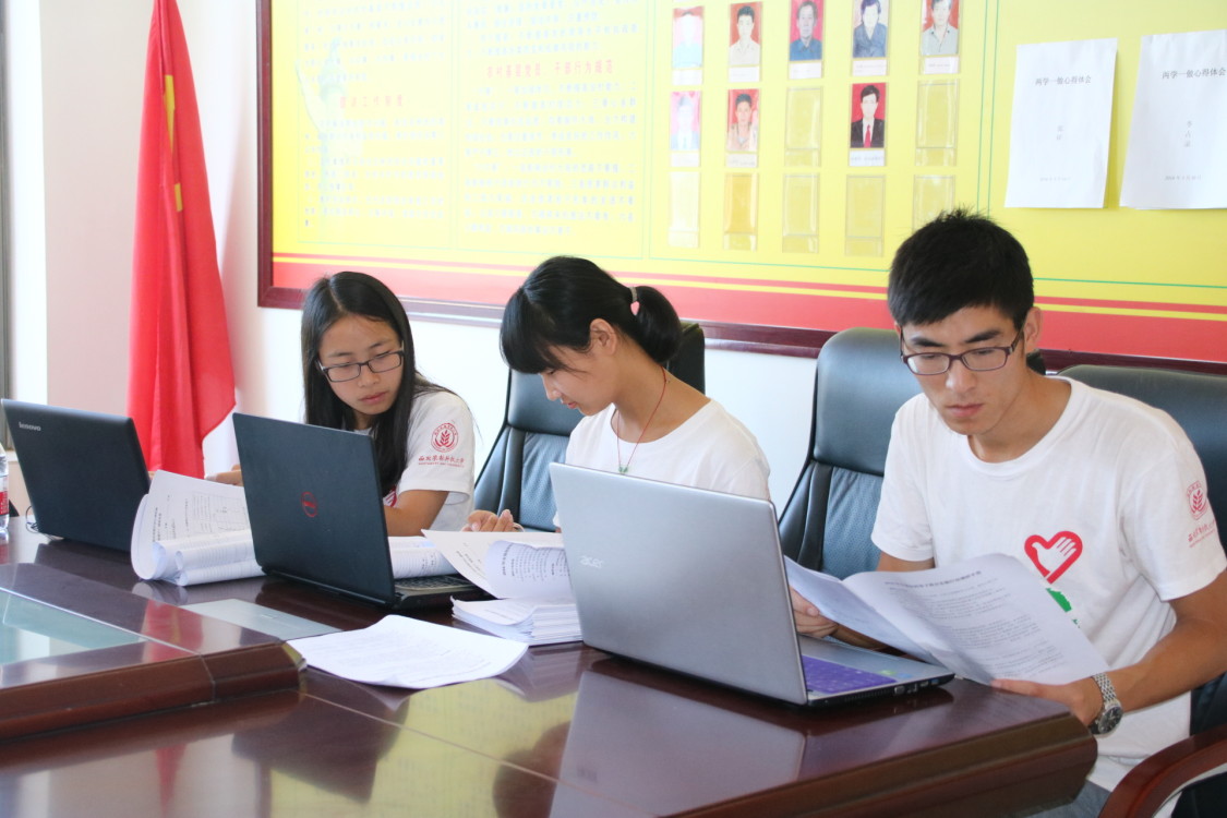 下午,队员们一起整理问卷,将问卷信息录入数据库中。由于工作空间和网络因素的限制,队员们来到了村委会,在村委会会议室展开工作。队伍内部分工明确,一部分人负责整理问卷信息,一部分人负责数据录入,还有一部分人则负责信息校正。经过两个小时的努力,问卷信息全部录入完毕。