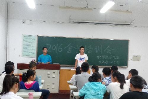 为方便本学年学生宿舍卫生检查等相关工作开展,构筑和谐宿舍,9月13日晚9:30,js555888金沙老品牌团工委学生会生活部与心咨部联合在北校区8号教学楼开展了2016级宿舍长培训大会。