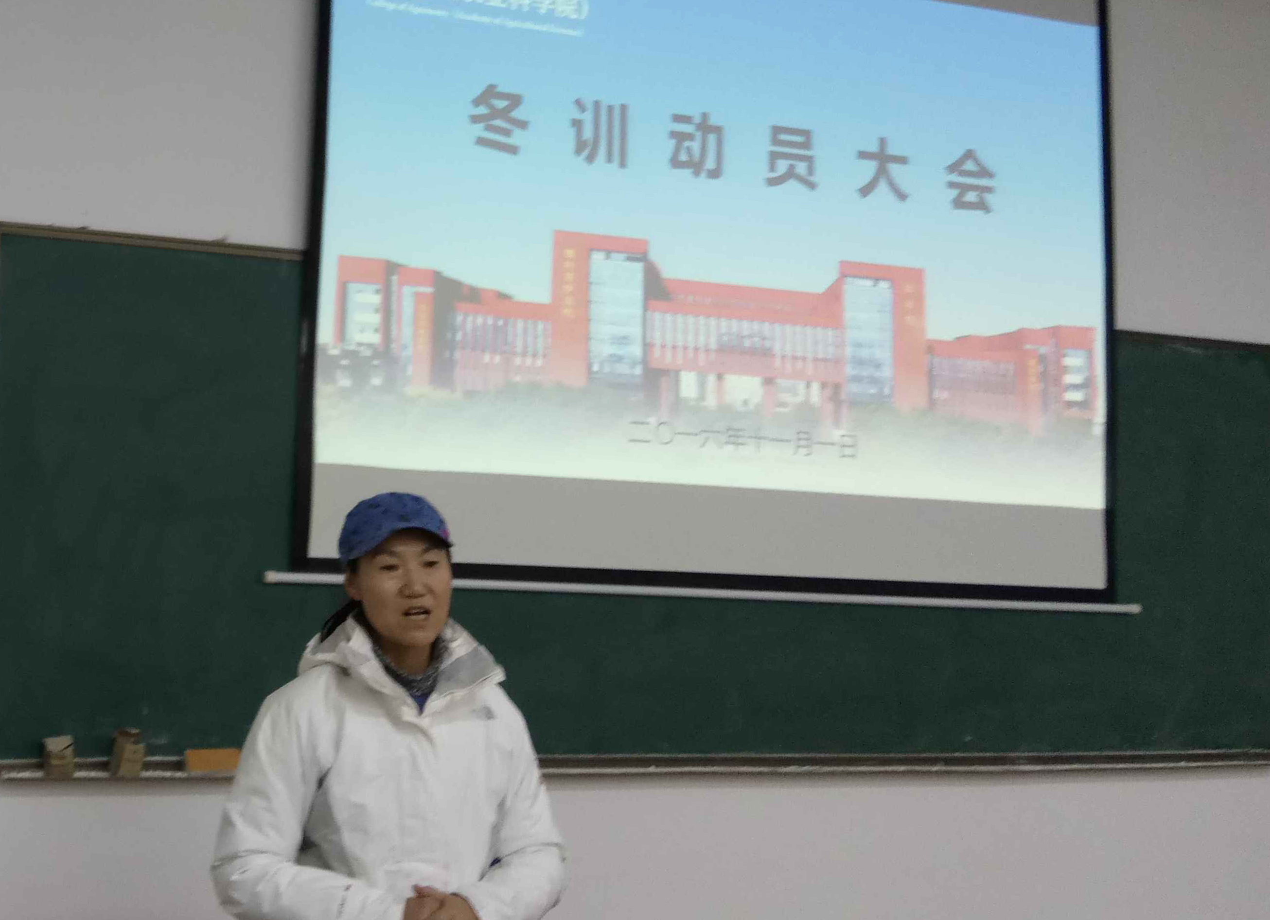 薛少朵老师也表达了自己的殷切期盼。她希望同学们认真对待冬训,坚持冬训,用自己的毅力去克服训练过程中的困难。在训练的过程中也要注意安全,把身体健康放在第一位,争取在比赛中取得优异成绩。 李春华老师作了总结发言,提出了几点要求。希望同学们把军训时的精神应用于冬训之中,不怕吃苦,发扬农学人敢为人先的精神,在以后的越野比赛中取得更大的进步,迈上新的台阶。