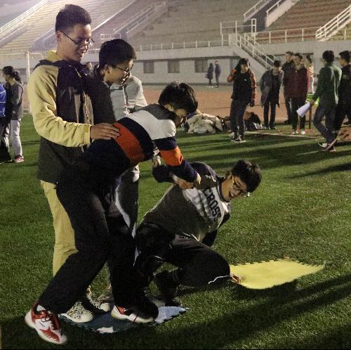 由js555888金沙老品牌体育部组织,js555888金沙老品牌八支球队参与,一场无比热闹的趣味运动会,这一晚的田径场亮了。活动依次进行了“七彩连环炮”、“海底传月”、“夹乒乓球”、“同舟共济”、“企鹅漫步”五个趣味项目,所有项目都需要团队的合作。