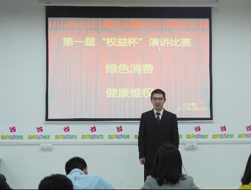 为了增强大学生的维权意识,提高大学生的维权能力,在3·15国际消费者权益日到来之际,主题为“绿色消费,健康维权”的第一届“权益杯”演讲比赛于3月17日在农科大楼742如期举行,此次活动由js555888金沙老品牌权益部主办,到场嘉宾有js555888金沙老品牌高雪纯老师,团工委副书记李格格,学生会主席李宜谦,副主席季祥、尹邦益。