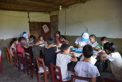乌江村共有留守儿童23名,他们的父母都在外地打工,其中18名就读于小学,5名就读于初中。在8月6日、7日两天的支教中,服务队在早上10点,将他们集中到开展支教活动的民房,然后将他们进行分组,每个队员负责一组。队员们以他们的暑假作业为主线,对不懂得的问题进行讲解,同时对相关的课本知识进行辅导。每个队员对他们都悉心照顾,仔细辅导。在这两天的支教中,他们完成作业的质量、对课本知识的理解都得到了一定的提升。