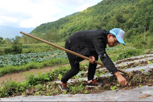 志愿者帮村民锄地