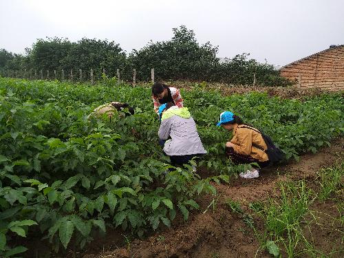 在合作社负责人的热情带领下,田园使者队伍一行人参观了合作社的果蔬基地,并与村民进行交流沟通。通过深入田间与农户亲切交谈,队员们对作物的培育、生长和病虫害防治有了进一步的了解,同时,也亲自动手在田里进行翻土、拔草等作业。实践中,田园使者们细心观察,发现问题,主动向村民询问作物的嫁接、土培以及病虫害等问题, 队员王洋表示,“田园使者”活动是为在校大学生提供了深入农村的机会,以加深大学生对农村的认识和了解,在实践中汲取营养、丰富阅历。