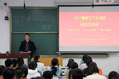 10月15日14:30,农学、植保、资环、园艺四个学院的三下乡活动交流会在北校区8307教室准时进行。本次活动由四个学院联合举办,每个学院派出两支代表队伍,与同学们分享暑期三下乡的活动成果和经验。