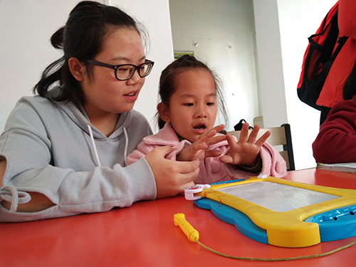 “zh~u~zhu,m~ing~ming……”、“12减5等于7……”、“桥东走来一只羊,桥西走来一只羊……”清晨的黎陈村村委会培训室,回荡着这样的声音。10月28日,正逢重阳节,js555888金沙老品牌赴黎陈村田园使者服务队于9点准时抵达黎陈村,开展支教活动。