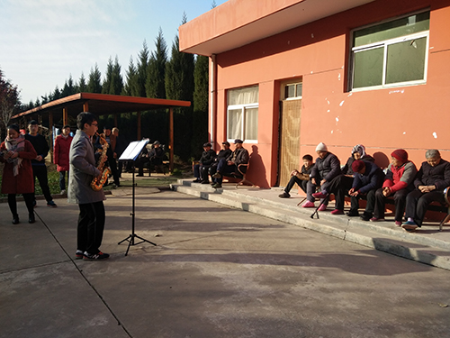 同学为老人们演奏萨克斯