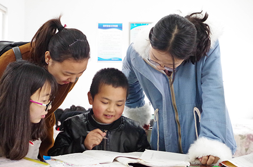 志愿者之前在辅导作业的时候,引来了许多村民驻足在教室门口,静静看着里面的一切,仿佛发现了新大陆,一句话也没有,有的只是上扬的嘴角。不久后就看见他们领着自己的孩子来到这里,把孩子的手交到志愿者的手里,长舒了一口气,眼神中充满了希望。正是志愿者的认真踏实,赢得了村民的信任。今天来了个新小女孩,她不太爱说话,志愿者决定到她们家去了解一下情况,志愿者问道:“您家里有什么活需要我们帮忙么”他妈妈看是志愿者们,激动不已,拉住志愿者的手忧心忡忡地说道:“你们辅导孩子们学习就是帮了我们最大的忙了,你们别看我家孩子这么小,她其实很难管,她写作业一点都不专心,前面开家长会,老师说她退步非常严重,字写得太丑,上大班就会算的加法现在都算不对了,愁死我了”社践部龙晓琴和王荣珍拉住孩子,宽慰着孩子妈妈:“尽管我们精力有限,但我们一定会抓紧每周天来这里的每一分每一秒,尽力帮助你们的孩子,您放心吧”志愿者深刻地感觉到了自己身上的重任与自己的意义所在,带领着孩子们斗志昂扬地回到教室,继续给孩子们辅导功课。