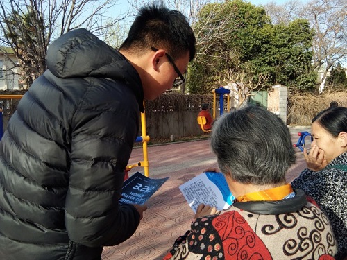 “水,并不是取之不尽用之不竭的,节约用水,我们要从身边的每一件事做起,从生活的点点滴滴做起。”队长在活动前这样说道。宣传队首先来到小区老年活动中心,在社区老师的热心帮助下,悬挂上了世界水日主题宣传标语。然后分为两队,分别在活动中心和街道上进行发放宣传单的宣传活动。活动过程中,队员细心地说明关于“世界水日”和“中国水周”的来历,解释了今年“世界水日”的含义,简明扼要地讲述中国和陕西省水资源的现状。队员们发现:大多数人之前从未听说过这个节日,经过和宣传队员一番交流,都对世界水日有了一定的了解,并且对节水行动深表赞同。有位老同志看不清传单上的内容,宣传队员就为他耐心讲解。老同志深有感触地说:“节水行动应该得到每个人的重视,我定跟身边其他人好好宣传宣传!”