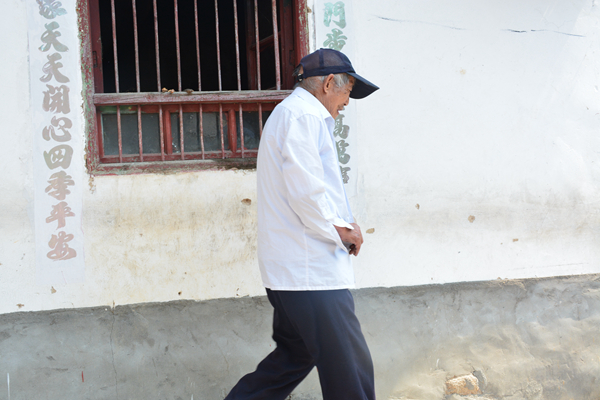 得知我们要给爷爷拍照时,爷爷表示要回家拍。图为爷爷指向不远处的家