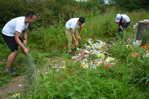 在靠近草甸的一个地方,可能是因为这里最接近游客目的地,垃圾散落一片,布满道路,覆盖了草地和道路。队员们不怕脏乱,直接动手捡拾垃圾。有的不好处理,队员们发挥聪明才智,用野竹子或夹起、或聚拢,进行处理。经过一番辛劳,绿意盎然、充满生机的草地重新映入眼帘,这让队员们充满了成就感。