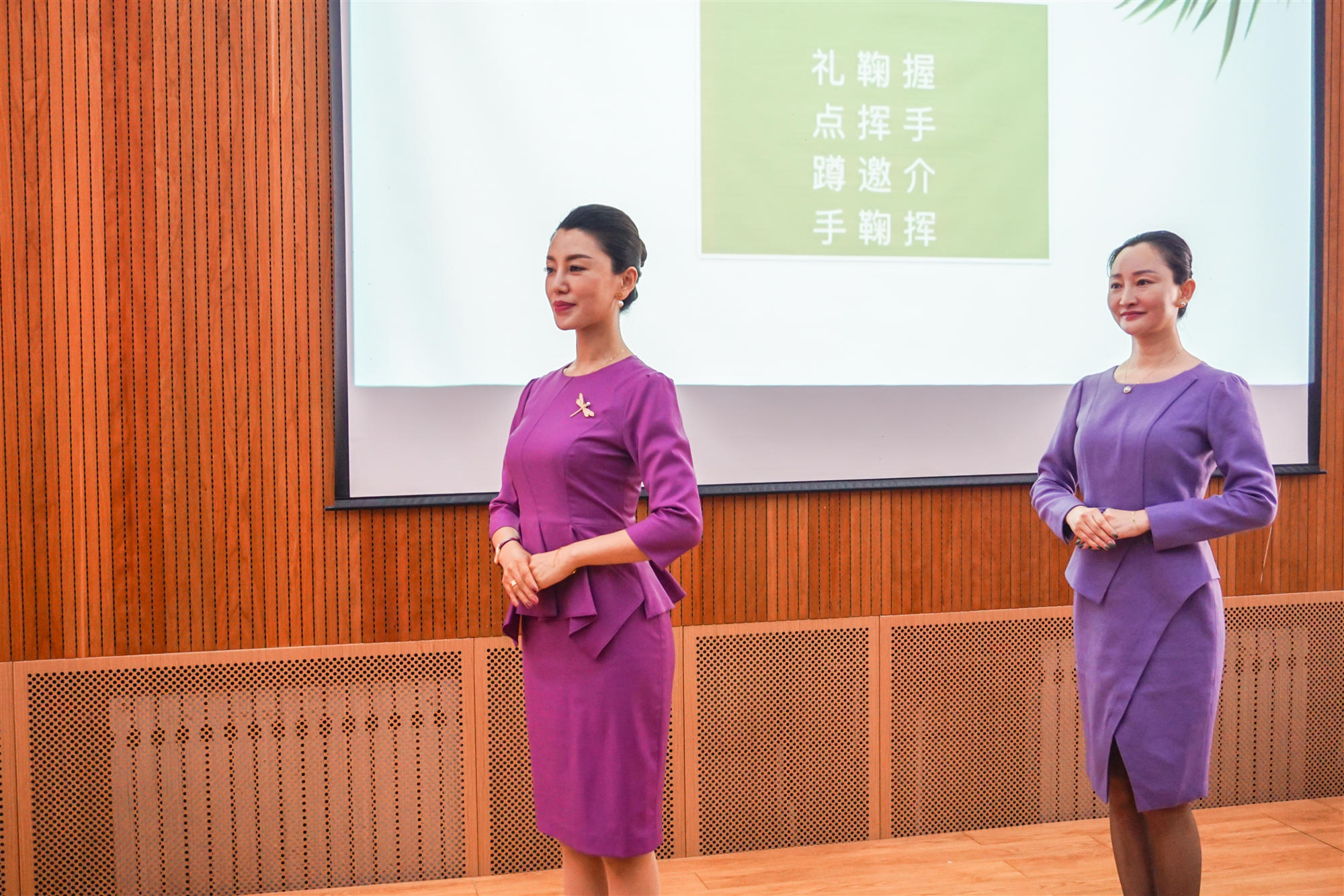 伍珊老师从最基本的礼仪讲起,手把手为同学们进行礼仪培训,内容充实,分类明晰,极大的带动了同学们的学习热情,将全体同学带入教学中。从坐姿到站姿,从握手到鞠躬,从服饰到妆发,伍珊老师事无巨细的为同学们进行讲解,希望同学们的仪容仪表、言谈举止能够在之后的就业求职中,甚至整个职业生涯中,做到适宜得体、谦逊有礼。