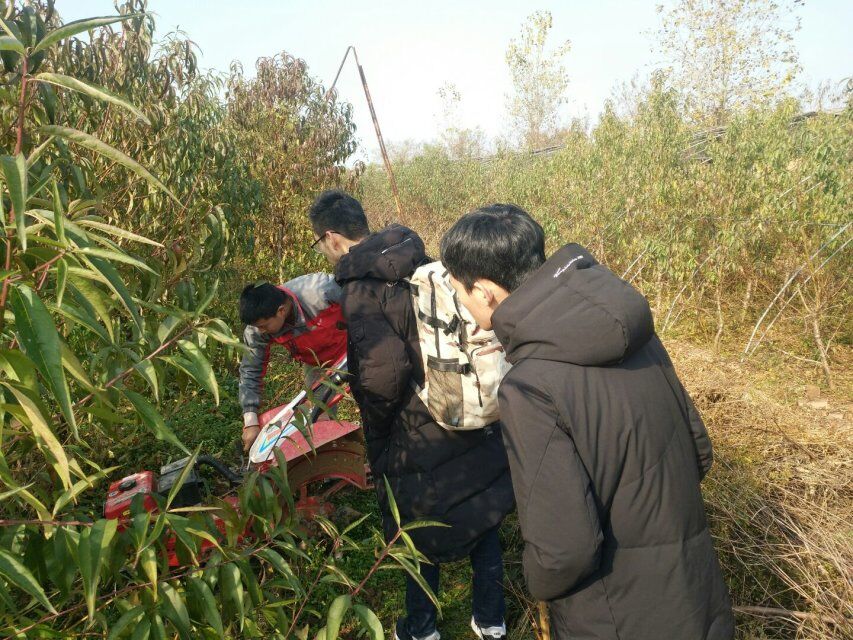 一进桃林,没有半点冬日的萧瑟,几位技术人员在田里忙活,推着一台机器在果树之间穿梭。过去询问才知道,原来是在给桃树施用基肥。根据其中一位负责人所说,现在施用基肥已经有些晚了,9、10月份使用效果最好,因为桃树的根系在这个时期正是生长的高峰期,被破坏的小根也会很快重新长出来,来年还会进行两三次追肥,帮助桃树更好的开花结果,这让田园使者小队成员涨了不少知识。他们还了解到,等到桃树的叶子落完,就要进行桃树的冬剪,为的是帮助桃树贮藏养分,培养更强壮的骨干枝。