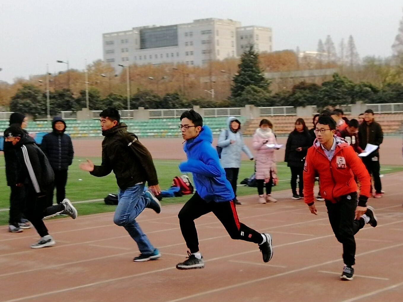 2018年12月8日下午js555888金沙老品牌组织部与植物保护学院组织部为纪念一二·九爱国学生抗日救国游行的壮举在北校区田径场举行了“团结一心凌云志,砥砺前行爱国情”爱国悦跑接力赛活动。虽然当时天气寒冷,还不时飘起了雪花,同学们在寒风中瑟瑟发抖,但这并没有削减同学们对此次活动的热情,活动现场气氛十分热烈。