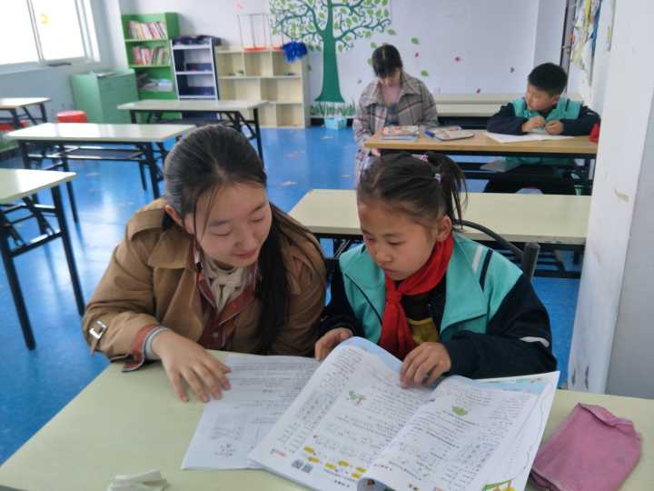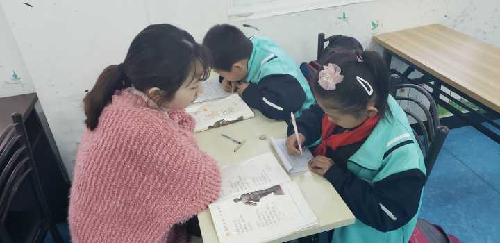 一开始,新的志愿者会因为初次支教而显得羞涩和紧张,新加入的小朋友也会因初次见到志愿者而显得腼腆害羞,但是随着交换姓名以及简单的聊天之后,孩子们逐渐褪去羞涩,打开心扉,用纯真感染着志愿者,志愿者支教的热情也愈发高涨,与小朋友们之间的关系越发融洽。有的小朋友作业很快就完成了,于是便和志愿者一起阅读课外书籍,就感兴趣的地方还会交流感想非常和谐。而有的小朋友却没有写完自己的课程作业,遇到不会的问题就会询问,志愿者也会耐心解答。但是一二年级的小朋友们自觉性和专注力时常缺乏,这就给志愿者们造成了一些小困扰,好在志愿者们非常有耐心,对孩子们循循善诱,或是手把手教他们按笔画顺序来写字,督促孩子们将字写得整齐漂亮,教学的效果渐渐好了起来。小朋友们对于自己坚定的答案,也不会因为志愿者给出的答案而动摇,查阅资料证实小朋友是对的之后,他们脸上的表情就像完成了某件大事一样自豪且喜悦。学习是相互促进的,这也给志愿者们上了很好的一课。面对懊恼的数学作业,志愿者更是从现实生活中列举例子,用聊天的方式让她明白了乘法与除法之间的关系,并且让孩子举一反三,真正懂得了所学的知识点。