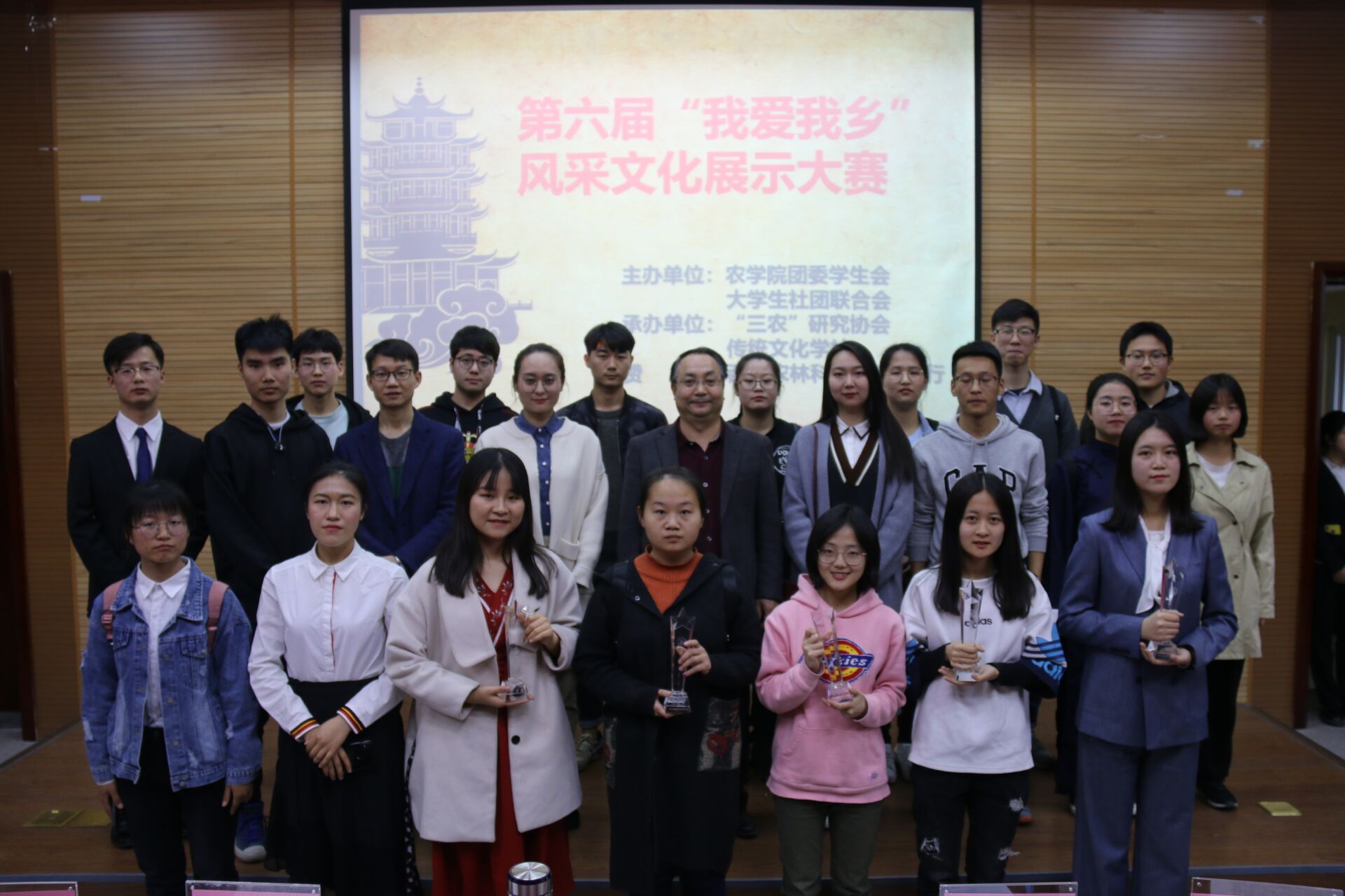 在等待结果的过程中,进行了有奖竞猜活动,同学们积极地参与答题与发言,介绍自己的家乡和文化,活动进行得如火如荼。最后比赛结果出炉,开始颁奖,一等奖印象西安队,由杨文杰教授颁奖,二等奖大榆队,南菁队,由周岑银老师颁奖,三等奖堂客说得队,淇奥朝歌队,农苑郑好队,由康霓老师颁奖。