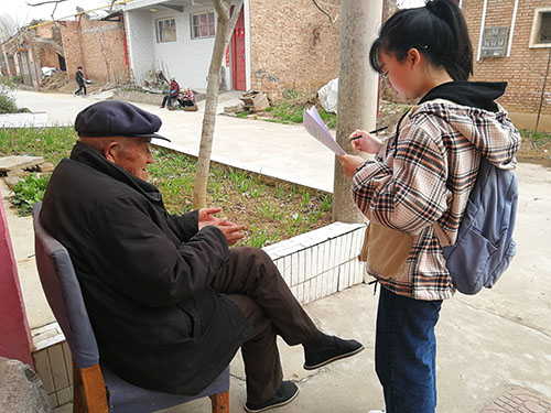 3月17日上午8点,上午组的同学们集合分组完毕,坐公交车分别到达了官村、陈家沟村。下车后,同学们划分了大致区域,随后一人或两人一组,到村民家中展开问卷调查。例如,斯木巴提同学调查的第一位村民是村里卫生所的张医生,说明来意之后,张医生十分乐意跟她分享有关村里的环境状况。在调查结束后,张医生还对她说了很多对环境问题的见解,例如村里的“垃圾站很不好”、“雾霾对身体危害极大”等。斯木巴提出来时表示自己一开始还挺紧张的,但村民们很朴实也很热情,说着说着就不紧张了。很多同学都是如此,他们面带微笑,遇到老人时,也会蹲下非常耐心的边聊天边调查,遇到孩子会随手给他们一颗糖,完全没有出现在学校调查时尴尬生硬的场面。中午12点半左右,同学们交齐问卷,一同坐公交车回学校。下午组的同学们下午3点出发,到汤村、陈家沟村进行问卷调查,到6点半结束。两组的同学们共做了 65份问卷。