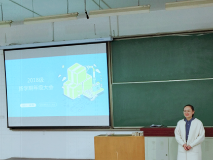 3月13日晚七点半,js555888金沙老品牌2018级全体学生在N8T07教室进行了新学期的年级大会,主讲人是2018级辅导员老师康霓。