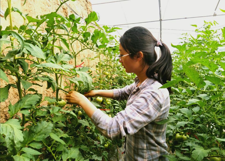 此次活动的主要内容是帮助杨凌紫荆花果蔬合作社的李阿姨干农活,正在大棚中忙碌的阿姨得知同学们的到来后赶忙出来迎接,淳朴的乡音显得十分亲切。在和阿姨进行简单的交流后,同学们跟随李阿姨进入大棚。本次活动任务是为即将成熟的西红柿进行绑绳固定,防止由于自身过重枝条下垂影响果实成熟。阿姨首先亲自示范:手拿塑料绳,将下垂的枝条提起,并在上方主干处打结固定。示范完后,阿姨让同学们每人拿一把绳子,一人负责两垄西红柿的固定工作。同学们认真拨动着细密杂乱的分枝,生怕漏掉任何一枝,绿叶上的色素弄脏了衣服和双手也毫不在意,完全没有惯常思维中年轻人养尊处优的娇气,反而处处体现学校“诚朴勇毅”的校训和“团结一心凌云志,敢为人先农学人”的态度。刚开始时小心翼翼,随着熟悉动作之后速度逐渐加快,有条不紊,大约两个小时后大部分捆绑工作就顺利完成。阿姨高兴地说:“娃娃们学得快,干得好,要是你们不来帮忙,我得绑一整天呢!等再过一两周柿子熟了,你们周末没课就过来尝尝,刚成熟的西红柿可好吃呢!”大家都被李阿姨的热情朴实打动了。干完活后,同学们和李阿姨一同在大棚外面合影留念,并表示之后阿姨有事情同学们都会来帮忙。