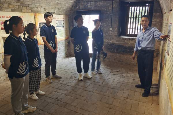 穿梭在三面窑中,调研队队员们认真聆听着向导对窑洞内陈列事迹的讲解。一路走来,八路军向芝川镇的群众宣传中国共产党的抗日政策,传唱抗日歌曲,为群众担水扫院,忙前顾后;群众们也是奔走相告,箪食壶浆,慰问八路军将士们。在东渡期间,当地群众自发为八路军筹集物资、帮助八路军造船、做船夫助八路军东渡黄河。这一例又一例军民之间的感人事迹穿越过近百年的光阴,在几十年后的今天,仍然让队员们感受到前辈们军民一心、团结抗战的伟大革命精神。通过向导的讲述,调研队队员们感受到了红色革命精神的丰富内涵,也体悟到革命的胜利在于军民一心,在于同仇敌忾,在于坚持不懈。