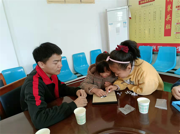 活动过程中,志愿者们带领孩子们学习篮球、羽毛球、排球等。孩子们根据自己的喜好自由选择,并迅速和志愿者们打成一片,三两成群进行活动。志愿者们耐心地教孩子们专业动作,指导孩子们如何打好篮球、排球、羽毛球。在这个过程中,志愿者和孩子们建立了深厚的友谊。其中,年级较小的孩子,在志愿者们的带领下进行简单的活动,如室内下五子棋,折纸等活动。