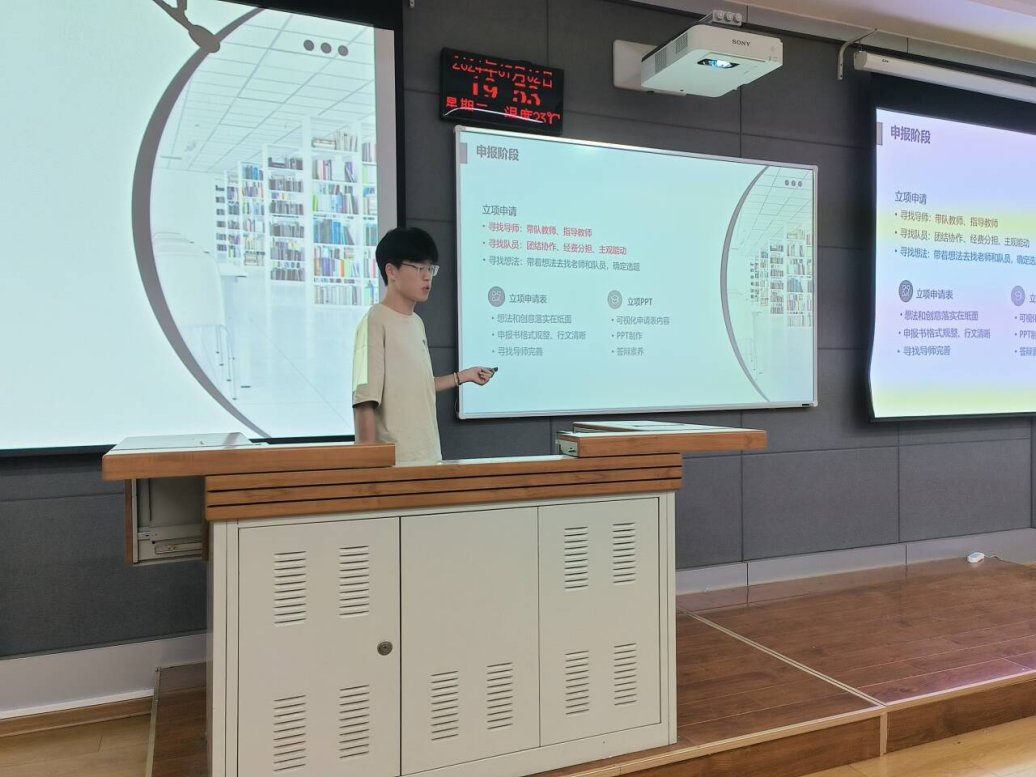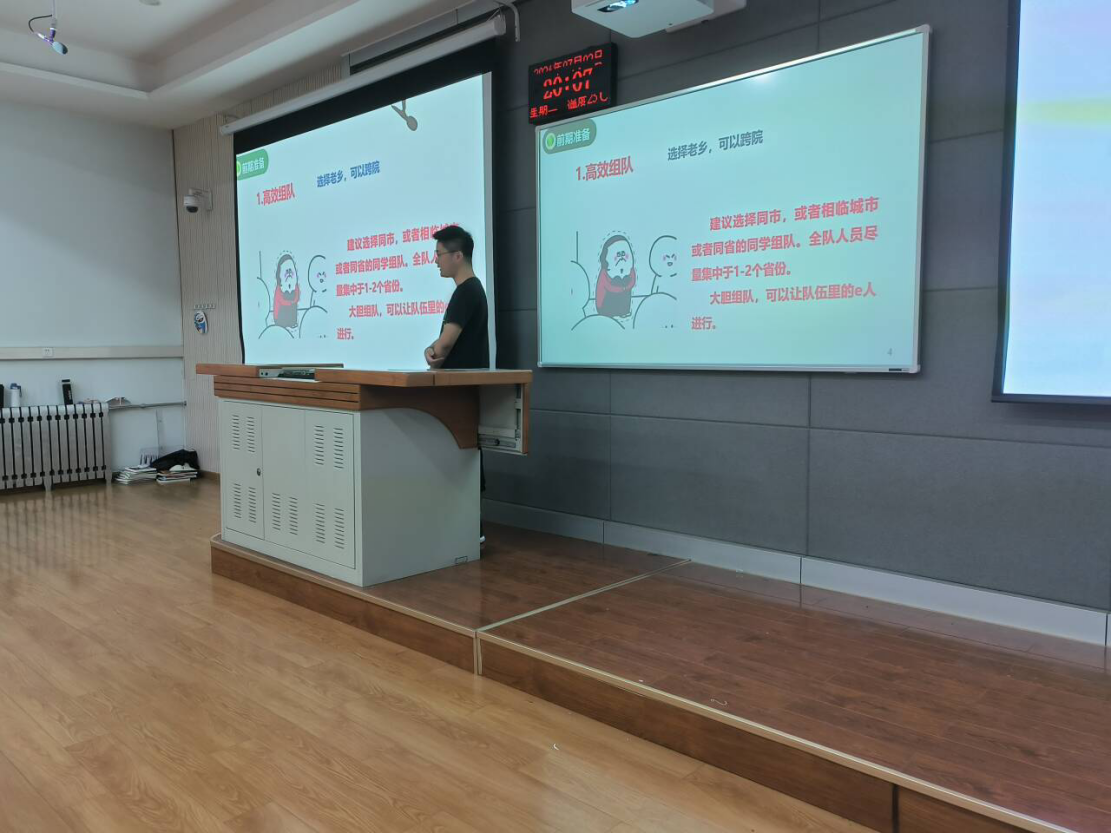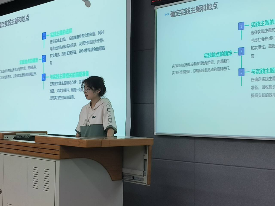 经验分享结束后,同学们积极提问,四支优秀实践团队负责人耐心解答疑惑。辅导员黄宾从“选题”、“选地”及“选人”三个方面详细介绍了暑期社会实践的项目申报,简单介绍了暑期社会实践的评优表彰、新闻投稿、视频制作等环节,同时重点强调了关于第二课堂学分的认定制度,鼓励同学们积极参与暑期社会实践,将实践成果转化为实际所需,为中国发展贡献青春智慧。