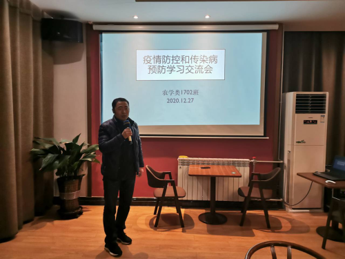 2020年12月27日,为做好元旦和春节假期新冠肺炎疫情防控工作,保障同学们安全度过假期,农学类1702班组织了疫情防控和传染病预防学习交流会。