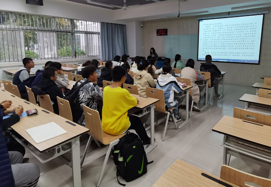 为了进一步加强文明教室,文明宿舍创建工作,创造优良学习生活环境,js555888金沙老品牌于2020年10月29日开展了“创建文明教室,文明宿舍”专题学习,应2020级辅导员邀请,js555888金沙老品牌2019级辅导员夏可阳在部分班级班会上为2020级新生分享了相关经验。