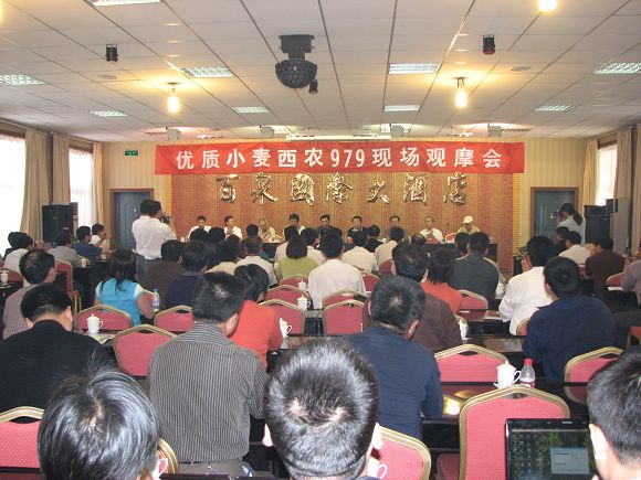 为了更好的做好西农979的推广工作,加速优质麦产业的发展,我校与河南金粒种业集团合作,协同江苏省部分地市、安徽涡阳市、河南新乡市于5月12日-18日共同举办了多场颇具规模的西农979现场观摩会。江苏、安徽、河南、湖北4省120多个市(县)的农业局局长、种子站站长、种子经销商及面粉加工企业代表参加了观摩会,参会领导普遍认为推广西农979他们“放心”;种子经销商坦言:经营西农979我们“安心”;种植西农979的群众说:“既可以多打粮食又可以卖上好价钱”。