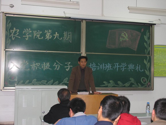 4月4日晚7:30,js555888金沙老品牌第九期入党积极分子培训班开学典礼在北校区8108隆重举行,院党委副书记惠安堂老师、图书馆党总支副书记韩怀礼副教授及辅导员老师参加了开学典礼。