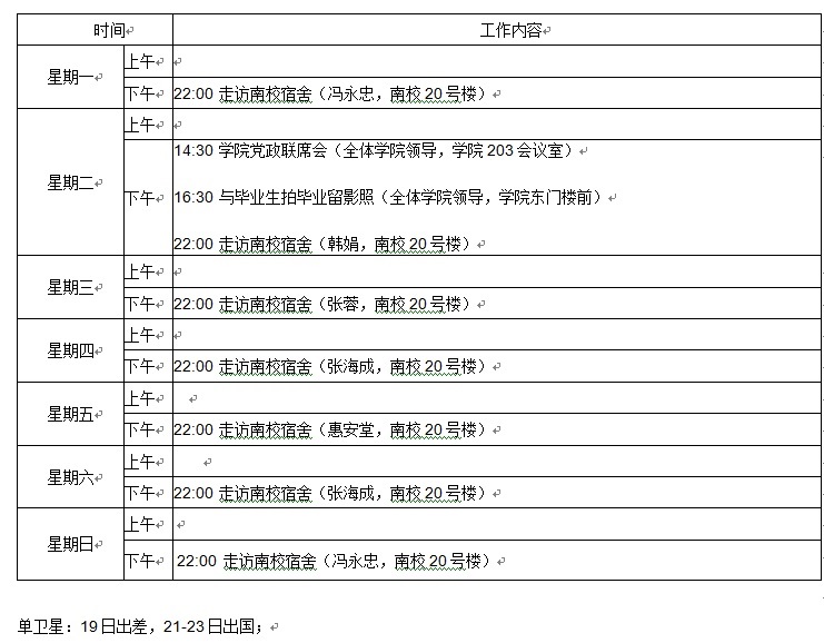 学院领导主要工作预告(第18周)