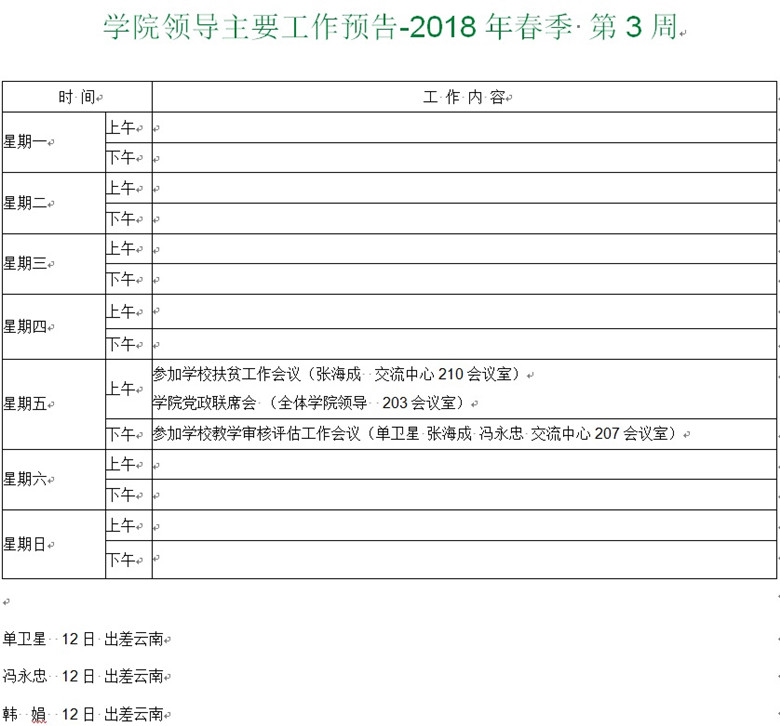 学院领导主要工作预告-2018春季 第3周