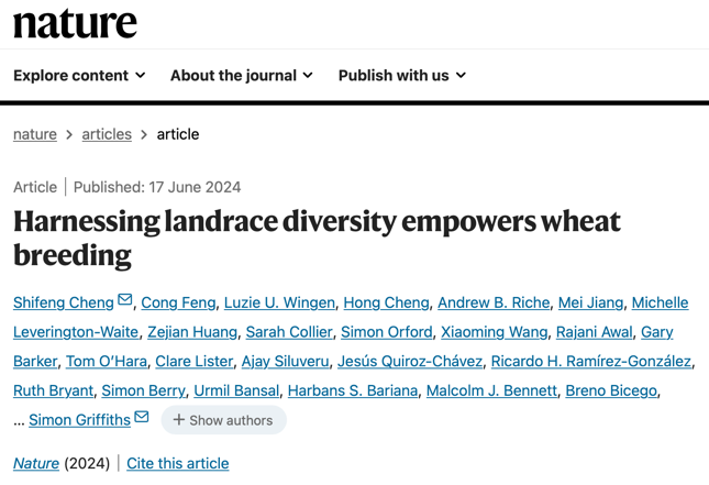 6月17日,金沙官网小麦非生物胁迫机理研究团队王晓明副教授参与的一项题为“Harnessing Landrace Diversity Empowers Wheat Breeding”的研究在Nature在线发表。该研究由中国农业科学院深圳农业基因组研究所联合英国约翰·英纳斯中心(John Innes Centre)等国内外多家优势单位共同完成,我校为联合署名单位。