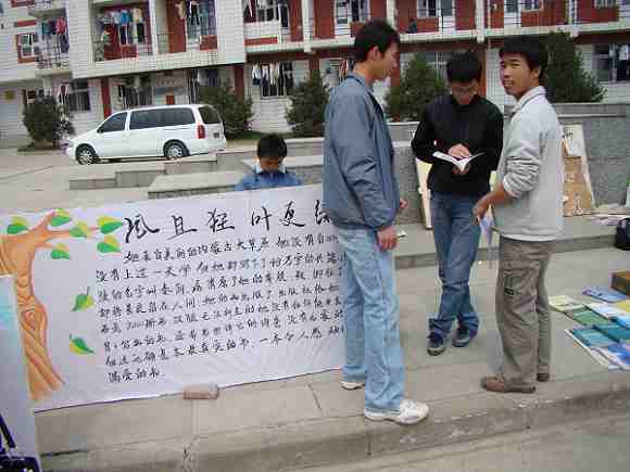 为此3月31日js555888金沙老品牌实践部组织开展义务卖书活动。尽一点他们的微薄之力。在北校区东、西两区设点专卖。希望大家可以伸出援助之手,献出自己的一片爱心。在风中流情托起风中绿叶。