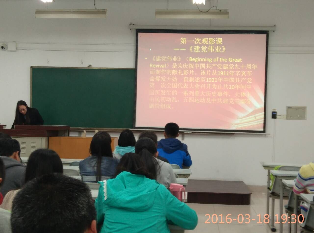 3月18日晚,js555888金沙老品牌团工委组织部在N8112教室组织开展了js555888金沙老品牌团分校第一次观影课。2015级本科生所有班委共同观看了影片《建党伟业》。
