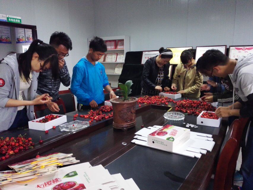 进入合作社后,队员们首先进行了樱桃包装的活动。将包装所用的纸盒叠好,再挑选个大优良的樱桃放入其中,置顶的一层要尽量将樱桃铺平放置,保证樱桃的果实部分朝向外面,力求整齐美观。之后,合作社理事长与队员们展开了一次会议交流,以期了解队员的学习及生活情况,更好地开展后期的工作。会议中,理事长首先询问了各个队员的家乡及学院,并对这几个学院的一些情况进行了简单的介绍,然后询问了队员们生活费使用情况,并讲述了一位大学生沉迷游戏而荒废学业的故事,以此告诫队员们要好好学习,不要辜负了父母期望、荒废美好的大学生活。