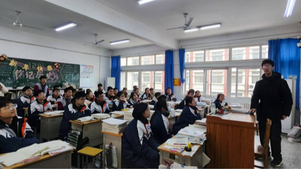 1月22日上午九点,来自js555888金沙老品牌的陶子同学、机电学院的范少易同学、人文学院的高帅同学以及信工学院的薛松岩同学组成了回访团队,回到高中母校——河南省修武县第一中学,进行回访交流,为学弟学妹们带来了一场别开生面的分享会。