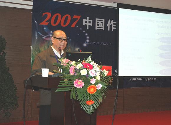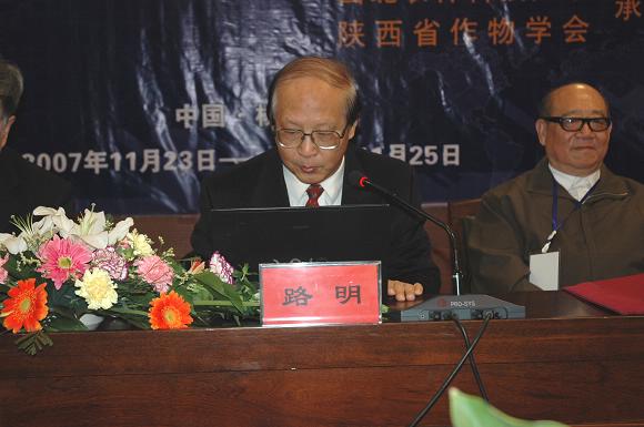 由中国作物学会主办、我校和陕西省作物学会承办的2007中国作物学会学术年会于11月23—25日在我校召开。中国工程院院士盖钧镒、朱英国、山仑,新当选中国科学院院士武维华,中国作物学会理事长、全国人大农业委员会副主任路明,江苏省政协副主席、南京农业大学副校长曹卫星,浙江大学副校长朱军,四川农业大学副校长杨文钰,陕西省科技厅副厅长许春霞,我校副校长赵忠,吴普特,陕西省农学会秘书长李水利,中国作物学会常务副理事长万建民,中国作物学会秘书长张保民以及来自中国农业科学院、中国科学院、中国水利水电科学研究院、国家大豆工程技术中心,浙江大学、武汉大学、兰州大学、中国农业大学、南京农业大学、华中农业大学、四川农业大学等全国30余家农业科研教学单位的专家学者共160余人参加了大会。