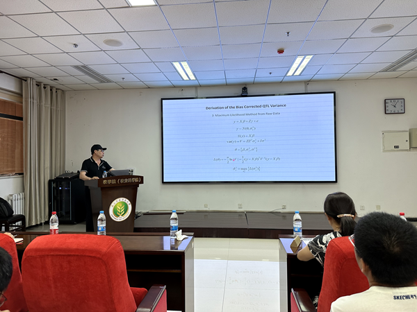 24日上午,徐老师为金沙官网师生作了题为“Estimation of Genetic Variance Contributed by a Quantitative Trait Locus”的学术报告。在报告中,为大家系统讲解了数量遗传学相关的多种遗传参数估计背后的统计学原理,总结了不同统计方法在估计参数中的异同。最后,徐老师介绍了自己课题组的研究前沿进展,鼓励大家勇于钻研,探究数据背后的统计规律。作为数量遗传学和生物统计领域的专家,徐老师深入浅出的报告提高了大家对科研数据的认识和理解。