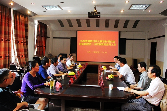 5月27日,四川农业大学新农村研究院院长田孟良教授,js555888金沙老品牌作物育种系主任牛应泽教授一行9人到学院访问。并围绕专业建设、人才培养、科学研究等领域进行了充分交流。