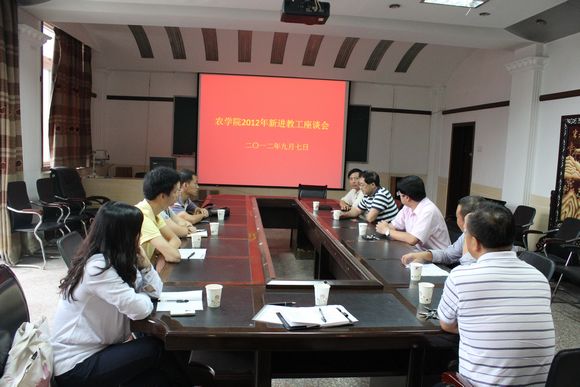 9月7日上午,在学院二楼会议室,学院召开2012年新进教职工座谈会,院长廖允成、党委书记惠安堂、副院长杜世平,2012年新进青年教工权利、任小龙、景兵、汪妤、史雪、吴伟、梁子龙等7人参加了座谈,座谈会由党委书记惠安堂主持。