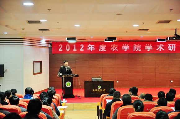 本次学术研讨会分为“大会主题报告”、“作物栽培与经济作物遗传育种”,“小麦遗传育种”三个方面,共44场报告。主要围绕学院近两年来的科研工作,由课题组代表作交流发言,目的是通过总结交流,让师生全面了解近两年来学院科研工作的开展情况,进一步营造浓厚的科研氛围,加强学院师生间的交流与互动。每位报告人从各自的研究领域就课题实施、项目进展、取得的成果等方面作了精彩发言。陈勤教授、薛吉全教授、宋卫宁教授、王中华教授和2012年新进学院的6位青年博士教工就各自博士期间及将来研究的方向作了大会主题报告。会议从形式到内容,给全院师生耳目一新的感觉,取得了圆满成功。